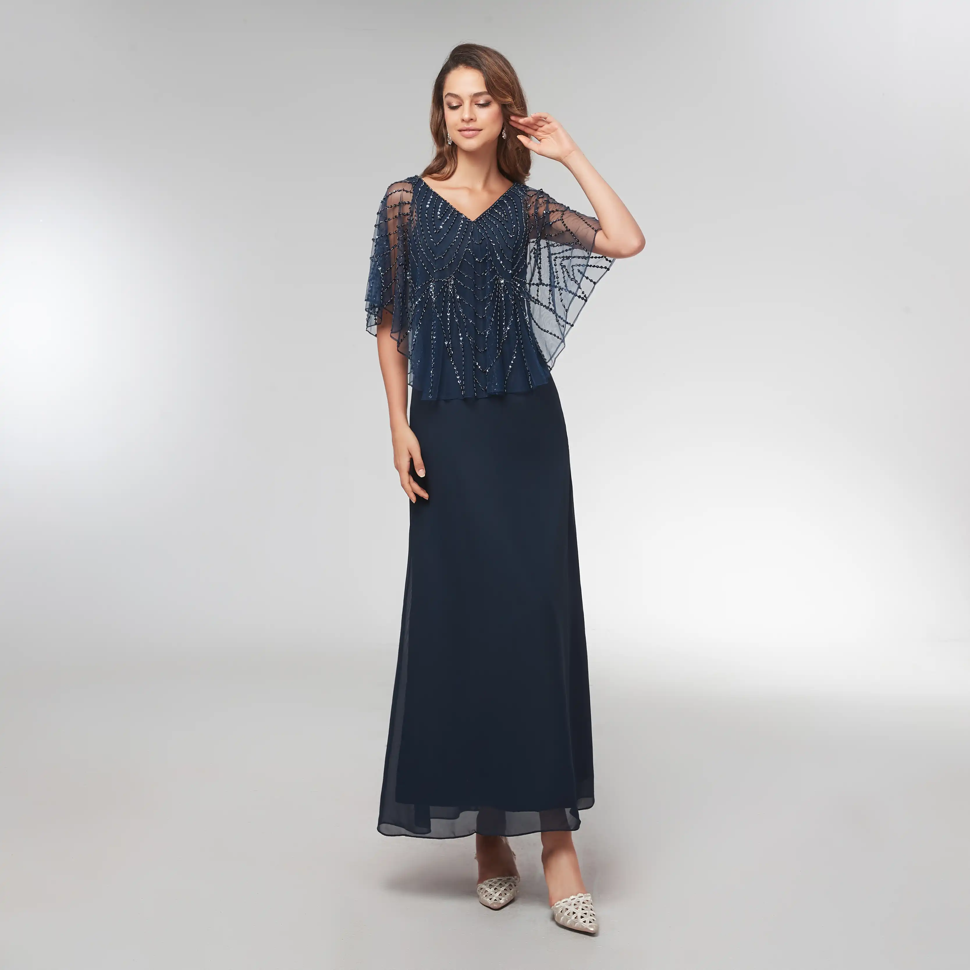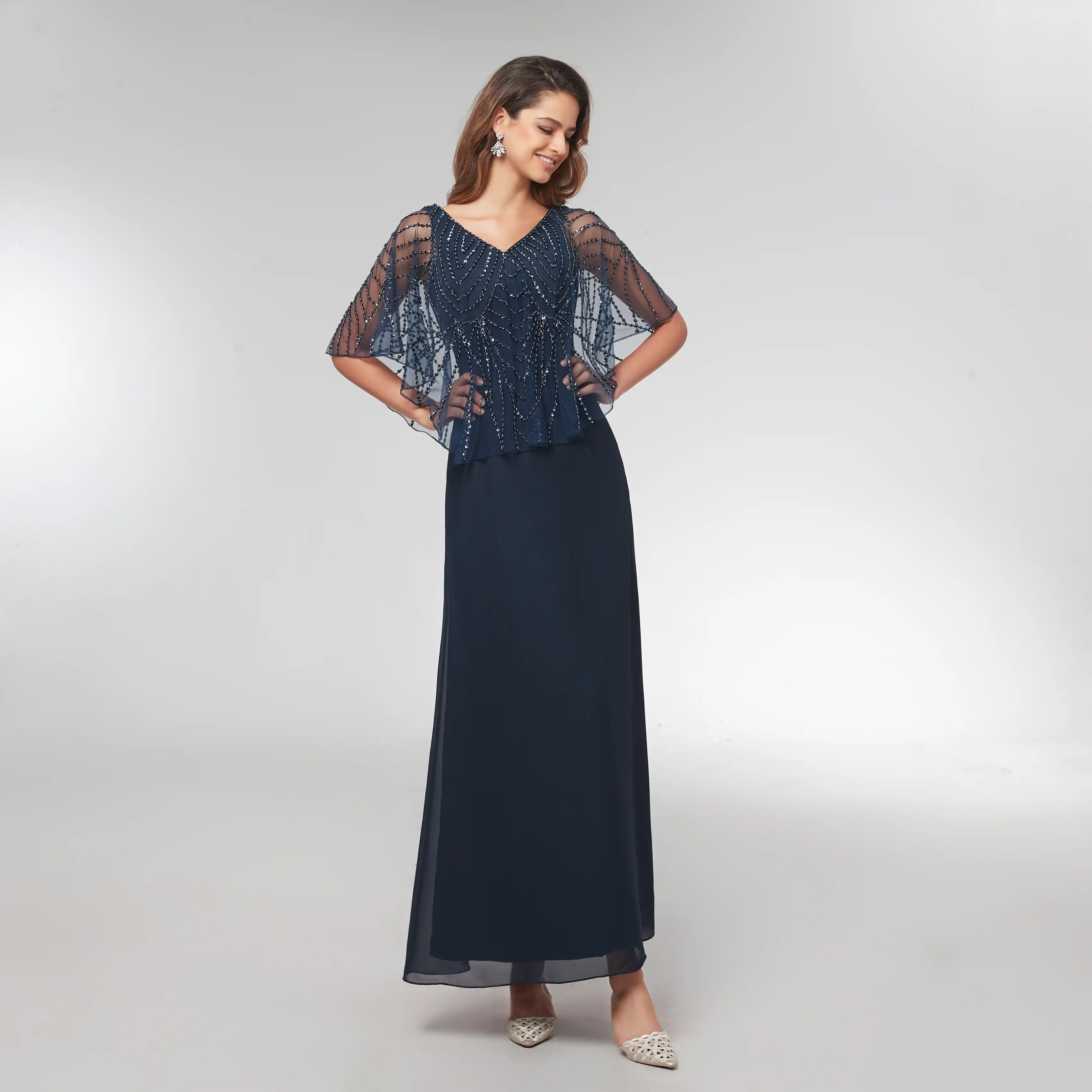 19 Chiffon Sequin Elegant Dark Navy V Neck Mother Of The Bride Dress A Line Robe Mere De La Mariee Weddings Events Wedding Party Dress