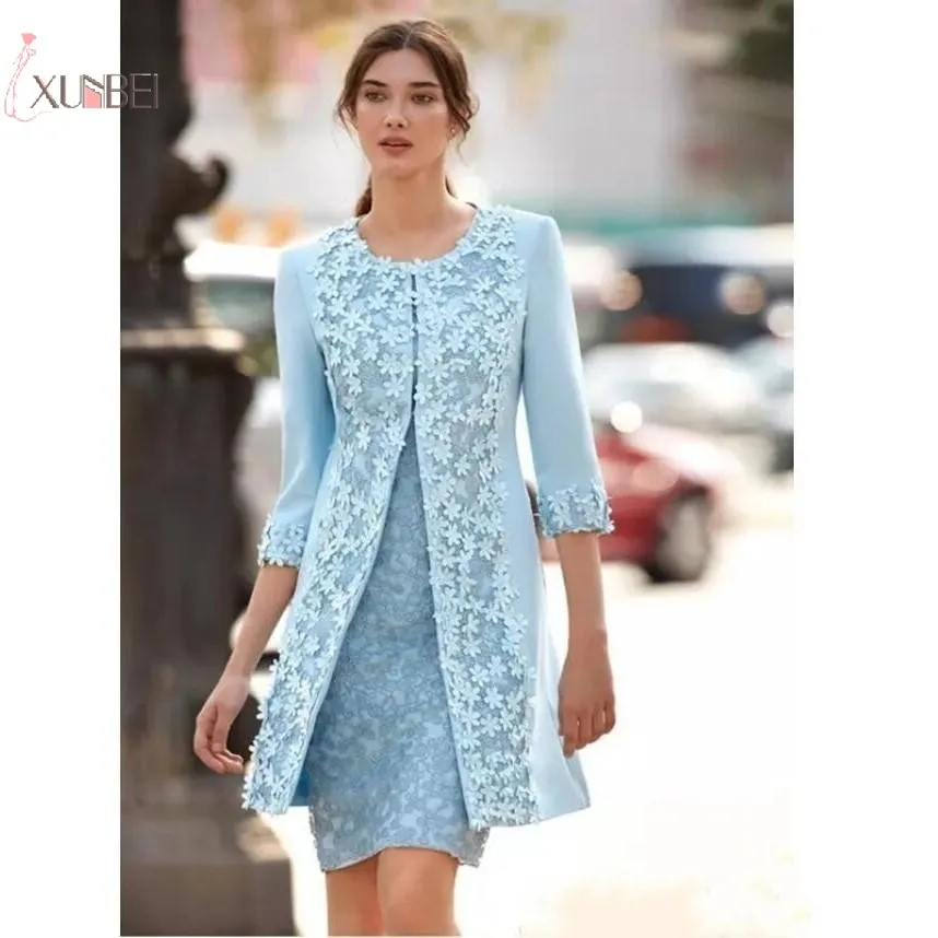Light Blue Lace Mother Of The Bride Dresses Suit With Jacket Knee Length Wedding Guest Party Gown Robe Mere De La Mariee Mother Of The Bride Dresses Aliexpress