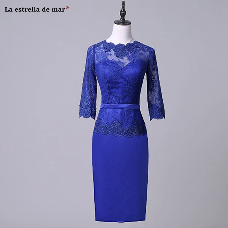 Robe Mere De La Mariee 19 New Lace Satin O Neck 3 4 Sleeve Royal Blue Sexy Mermaid Mother Of The Bride Tea Length Wedding Part Mother Of The Bride Dresses Aliexpress