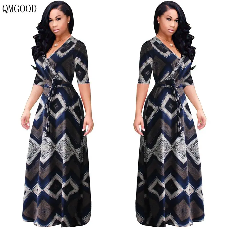 Qmgood Grande Taille Xl 5xl Boho Sexy Col En V Femmes Robe Robe Demi Manches Imprime Floral Longue Robe Femme Plage Maxi Robe Grande Taille Aliexpress