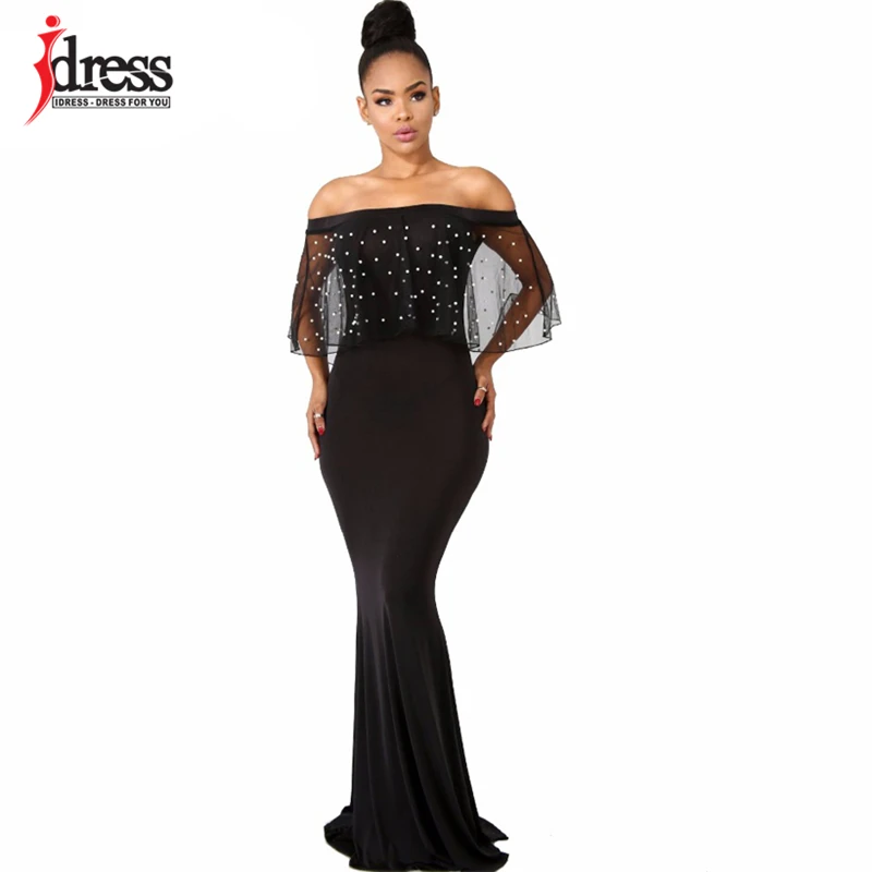 Idress S 4xl Femmes Noir Longue Robe Grande Taille Volants Perle Epaule Denudee Robe Sirene Pour Soiree Soiree Manches Courtes Robes Aliexpress