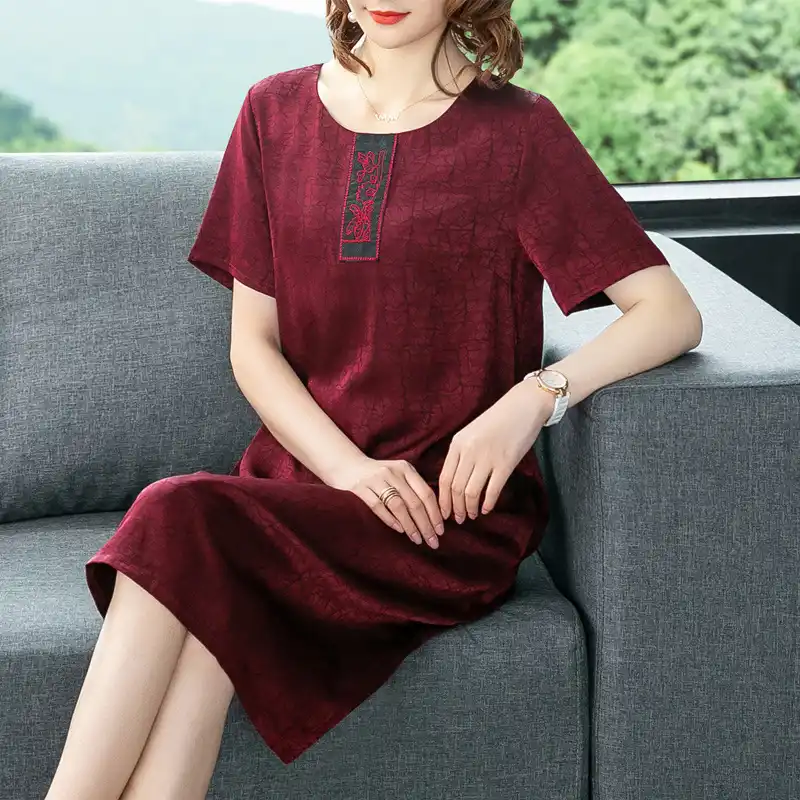 Ete Femmes A Manches Courtes Robe Lache Grande Taille Soie Col Rond Longue Robe Elegante Mature Femmes Robe Grande Taille 18 Aliexpress
