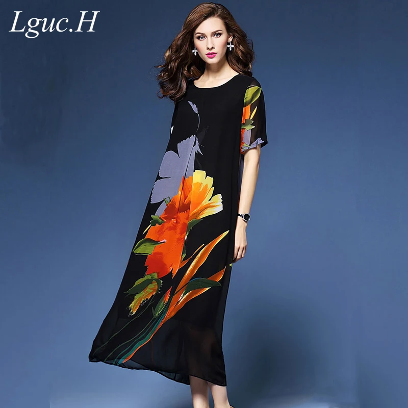 Lguc H Robe D Ete Grande Taille De Luxe En Mousseline De Soie Robe Florale Longue Robe Grande Taille Robe Ample Femmes Vetements De Mode Elegant 3xl Aliexpress