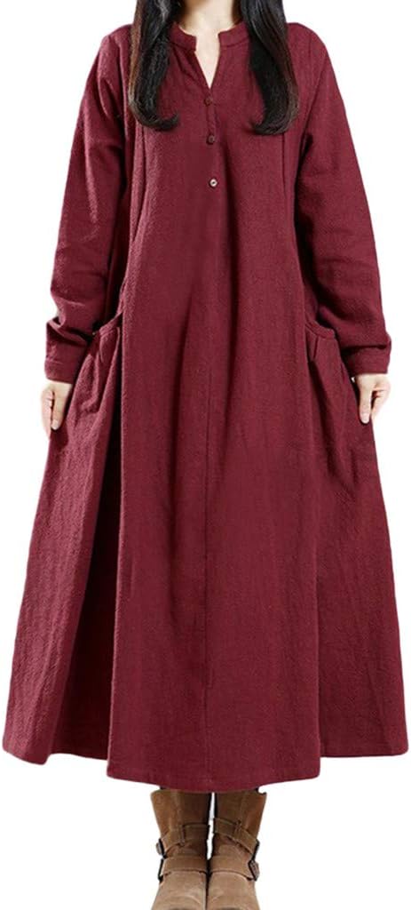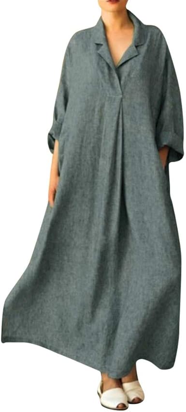 Ihaza Femmes Longue Robe A Manches Longues Robe Grande Taille A Col En V Et Grande Taille Robes Femme