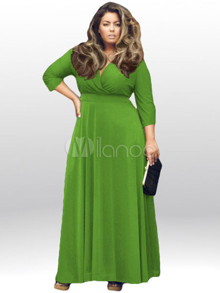 Robe Grande Taille Noire Col En V A Manches Longues Robe Maxi Pour Les Femmes Milanoo Com