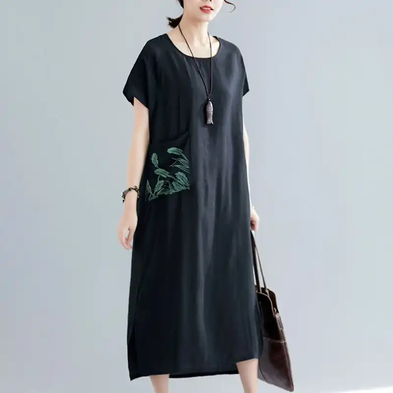 Black Robe Vintage Femme Long Dress Chinese Style Vestidos Short Sleeve O Neck Loose Casual Retro Dresses Summer 19 Ta14 Robe Gown Aliexpress