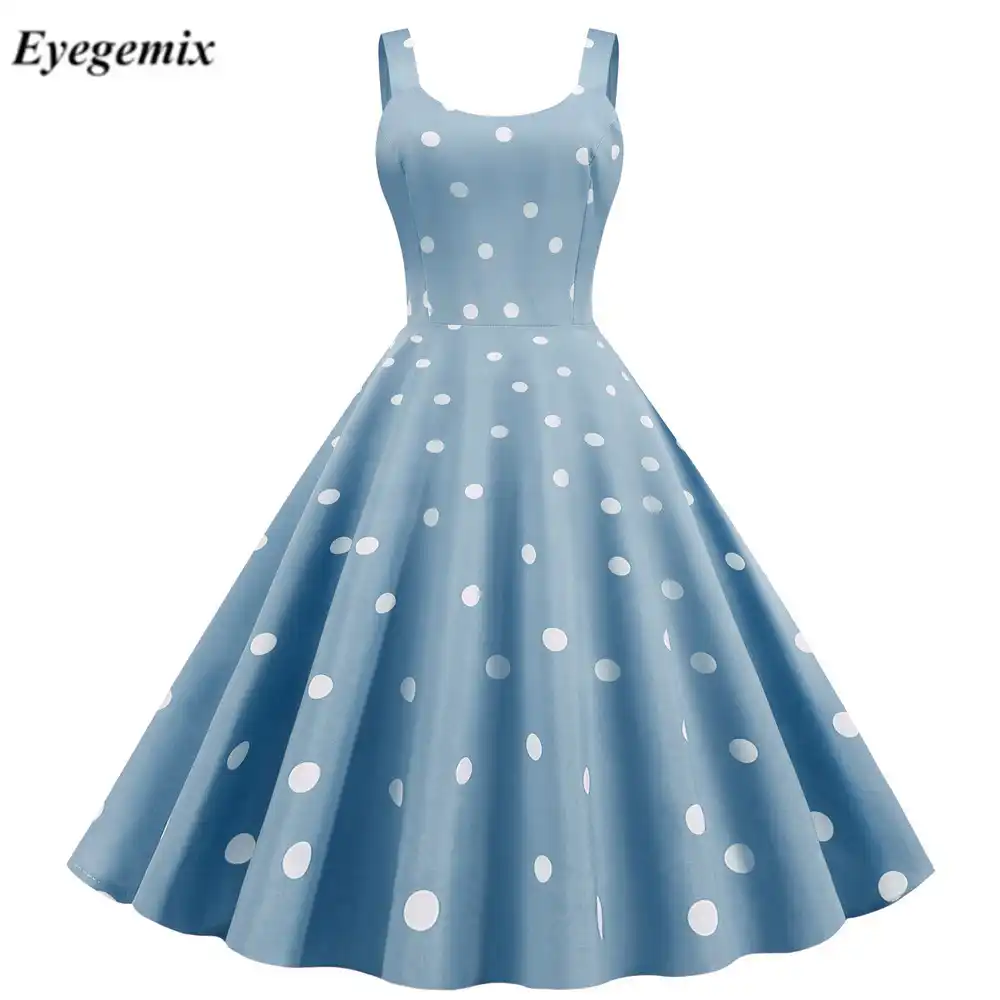 Robe Femme Retro Vintage Blue Polka Dot Summer Dress Women Sexy Spaghetti Strap Party Pin Up Rockabilly Dress Plus Size Aliexpress