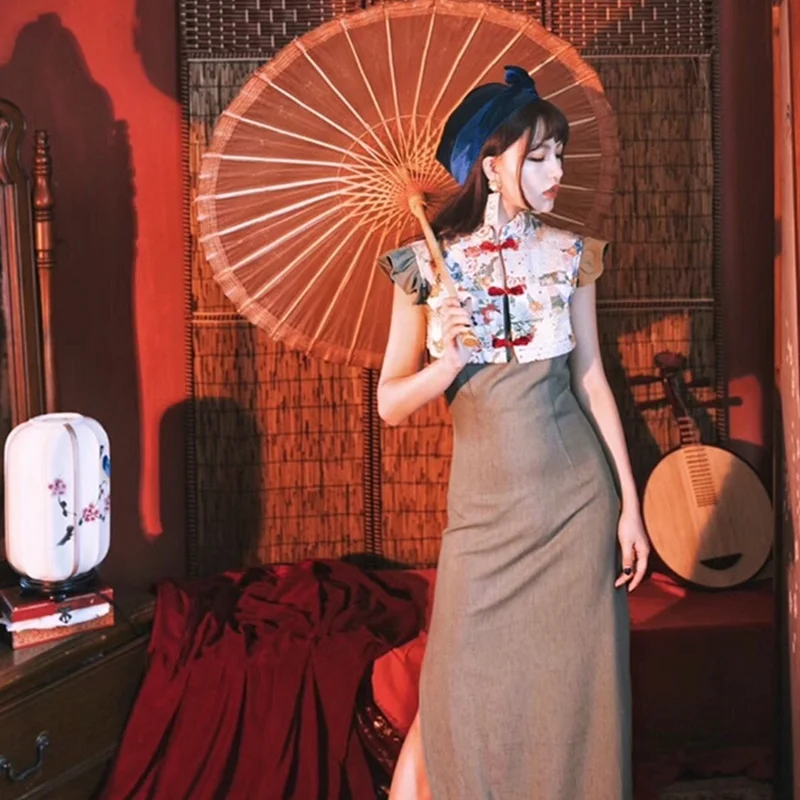Chinese Traditional Dress Cheongsam Shanghai Tang Floral Cape 2 Piece Set Retro Robe Vintage Femme Sexy Oriental Dress Ta1442 Cheongsams Aliexpress