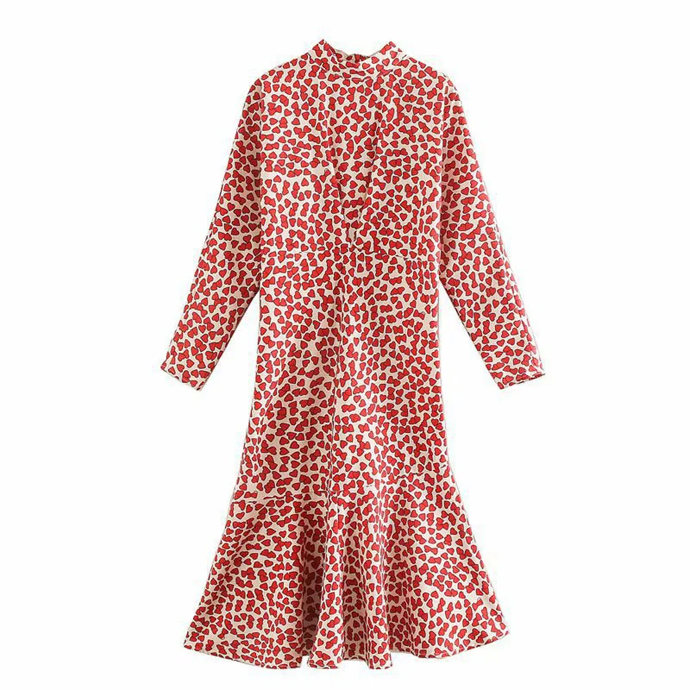 Red Heart Printe Women Dress Ruffle Lady Casual Korean Female Mermaid Dresses Robe Vintage Retro Femme Vestiods Girls Dresses Aliexpress
