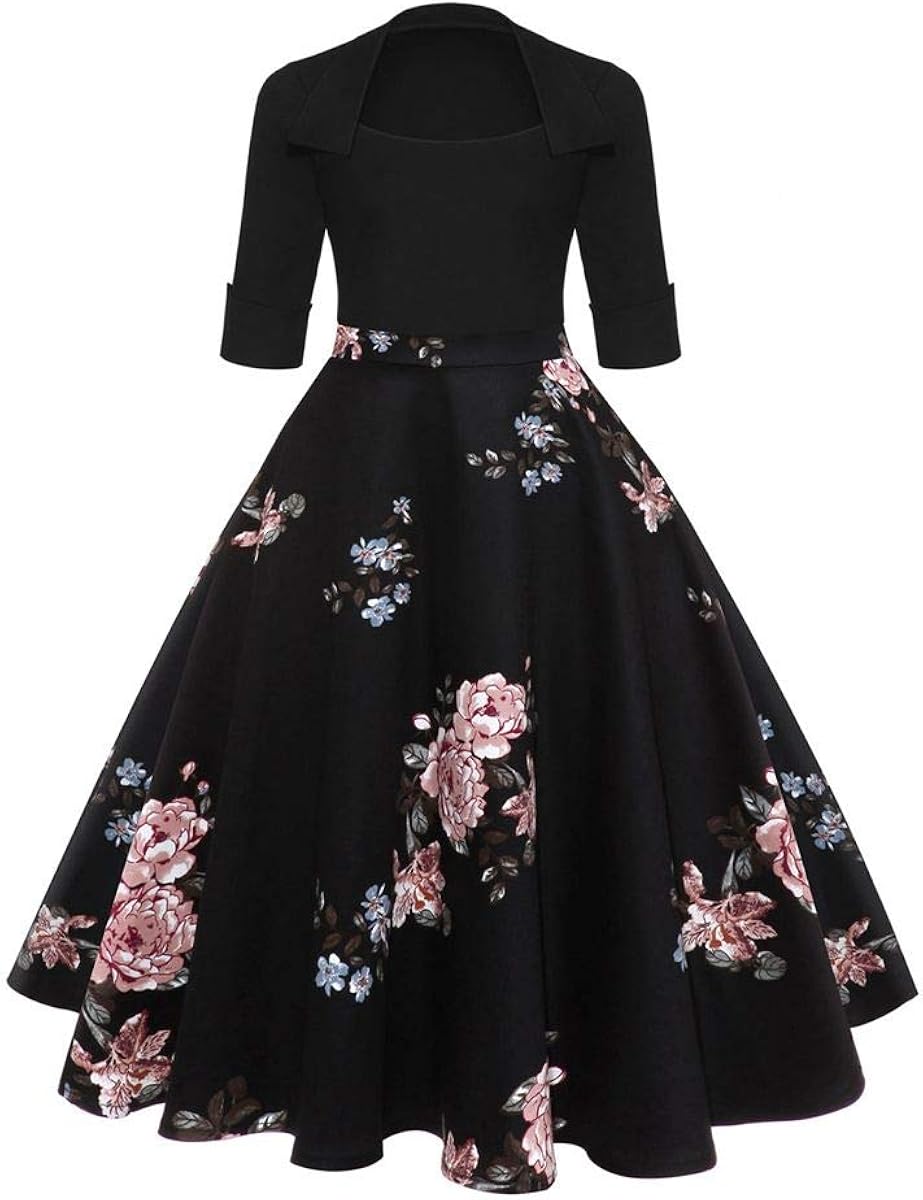 Vintage Party Dress Women Floral Flare Midi Dresses Retro Elegant Dress Vestidos Robe Femme At Amazon Women S Clothing Store