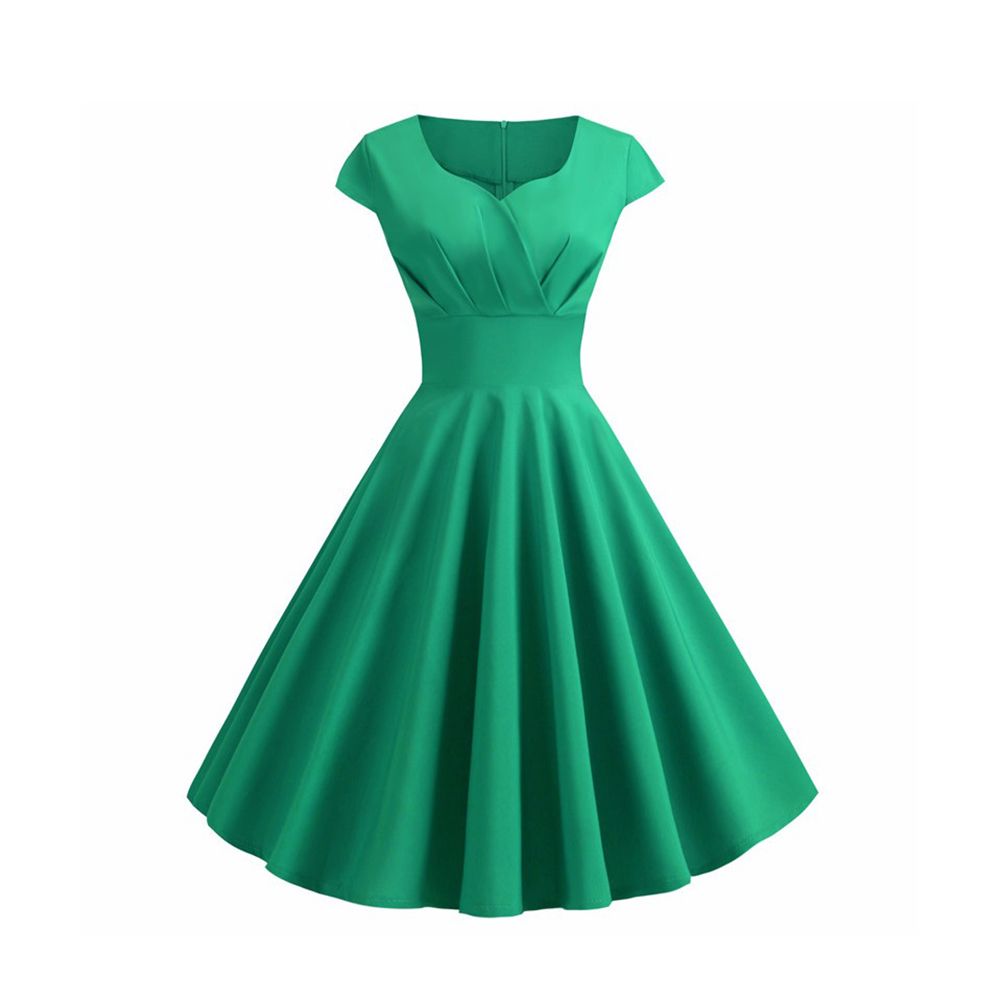 Summer Vintage 50s Rockabilly Dress Tunics Femme Robe Ball Gown Retro Dress Swing Ladies Vestidos Solid