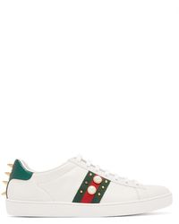 Women S Ace Sneaker White Leather With Spikes Studs Gucci Us