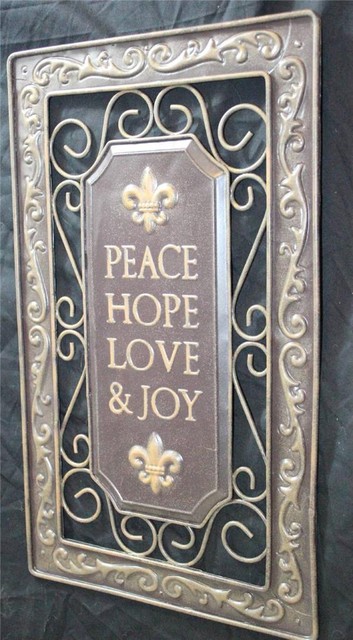 New Metal Tuscan Style Fleur De Lis Wall Art Plaque Picture Peace Hope Love Joy For Sale Online