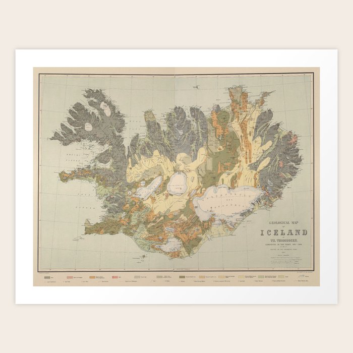 Vintage Geological Map Of Iceland 1901 Art Print By Bravuramedia Society6