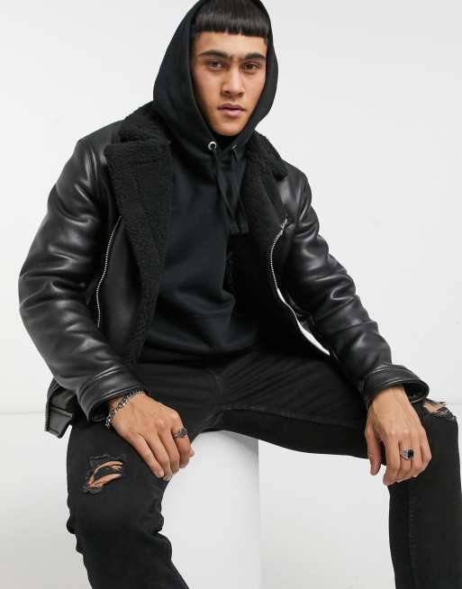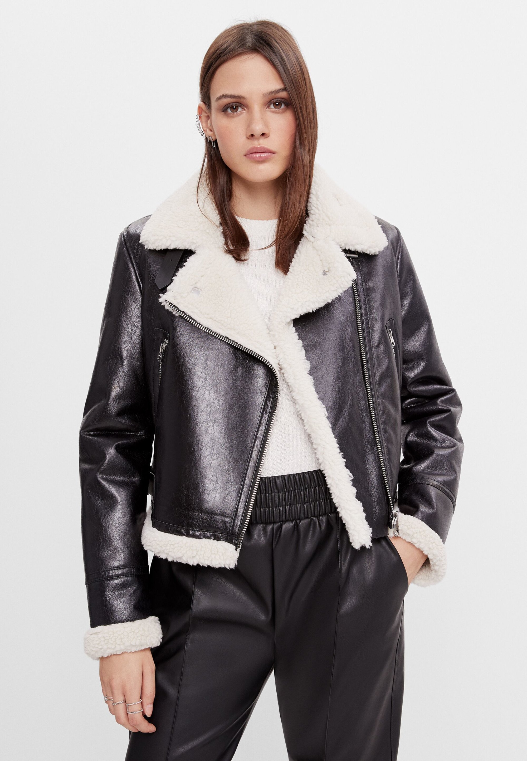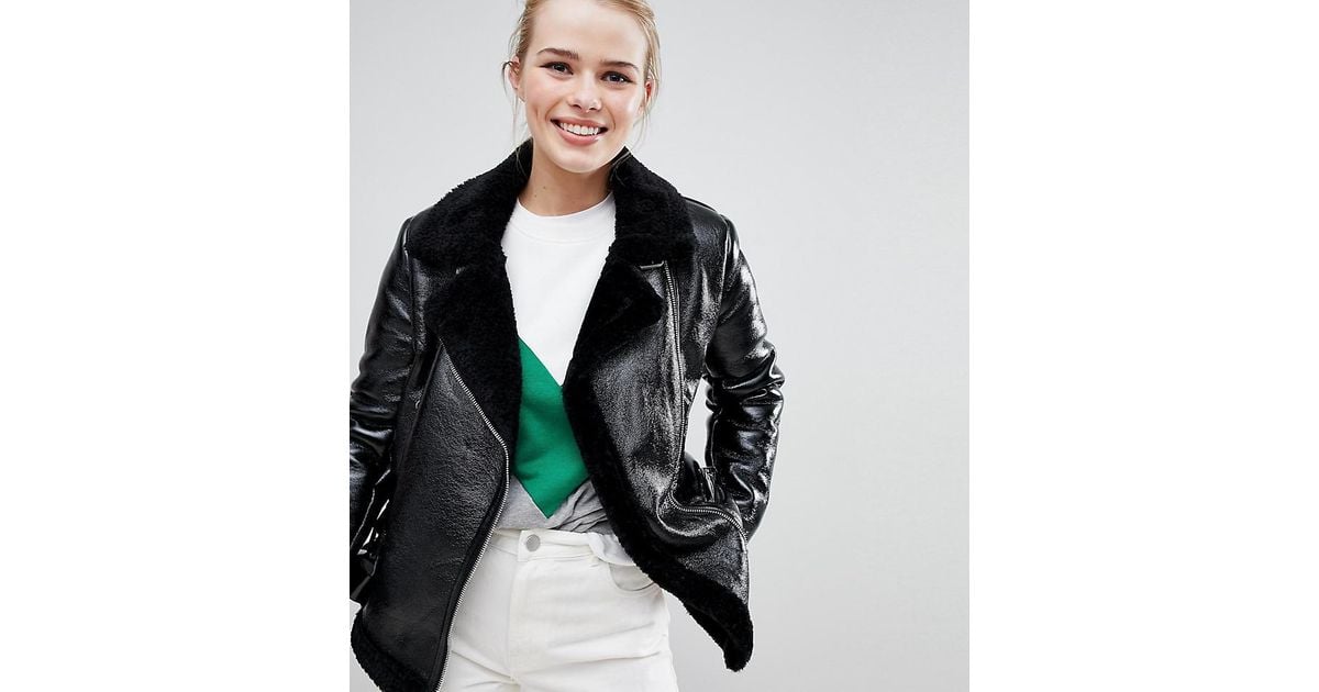 Bershka Blouson Aviateur En Imitation Cuir Avec Doublure En Imitation Peau De Mouton Noir Asos