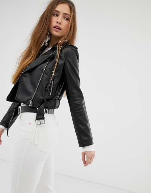 Bershka Blouson Style Motard Court En Similicuir Noir Asos