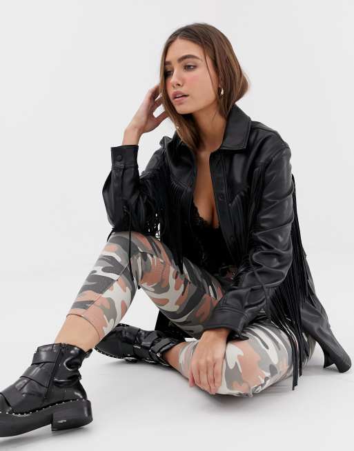 Bershka Blouson Style Motard A Franges En Similicuir Asos