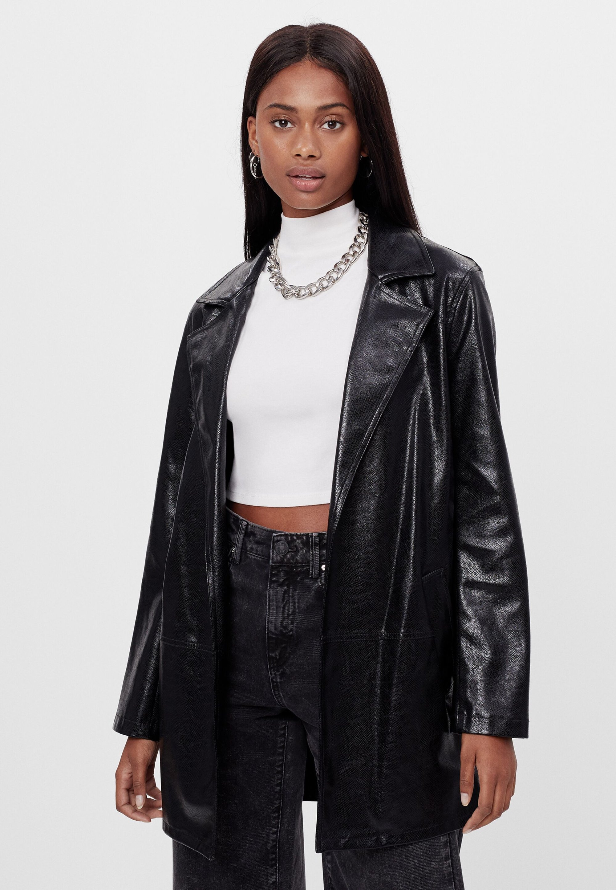 Bershka Blazer Oversize En Similicuir Noir Asos