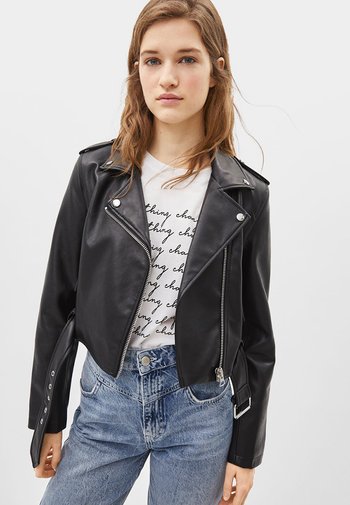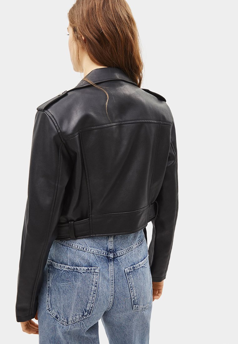 Veste En Cuir Noir Femme Bershka のギャラリー