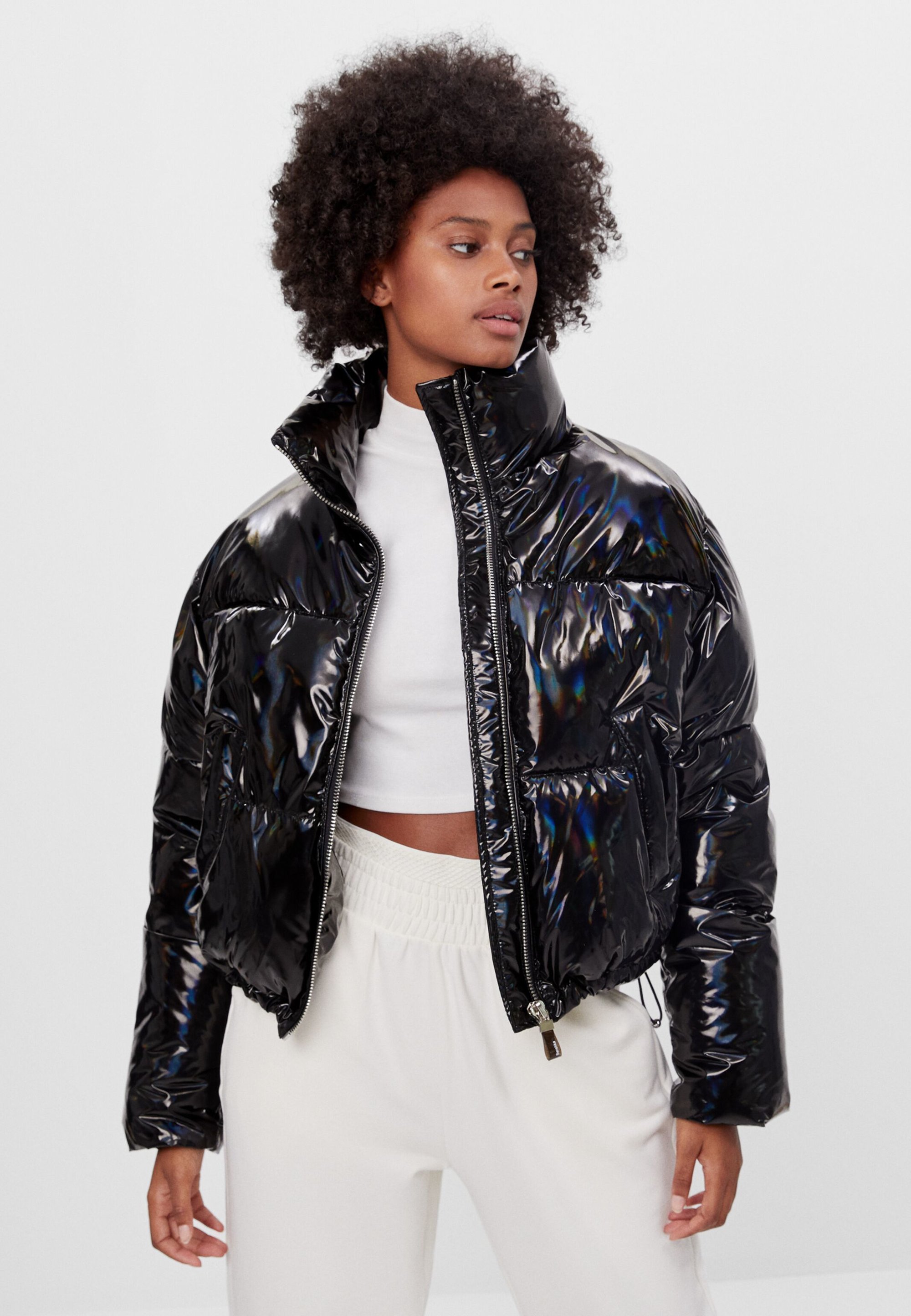 Bershka Vinyl Veste En Cuir Black Noir Zalando Fr