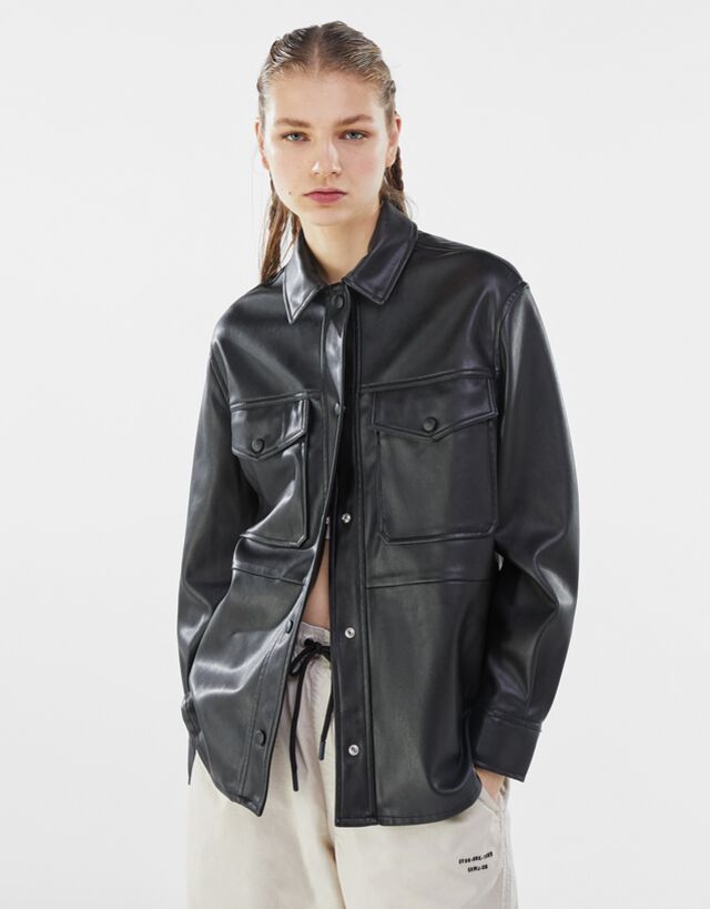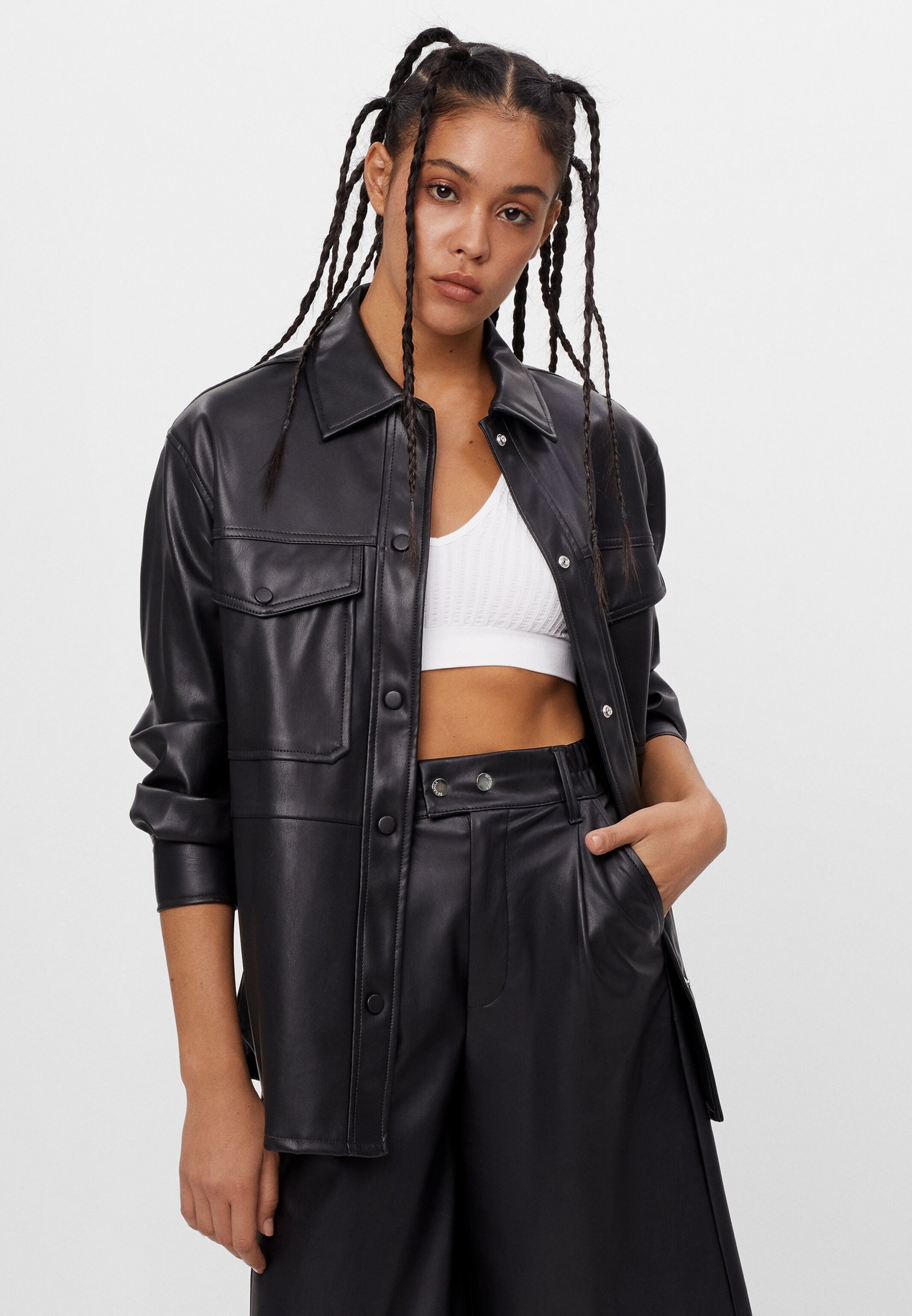 Surchemise Effet Cuir Blousons Et Manteaux Femme Bershka