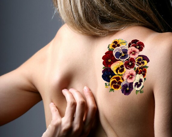 Tatouage Temporaire De Fleur De Pansy Posy Des Pensees Etsy