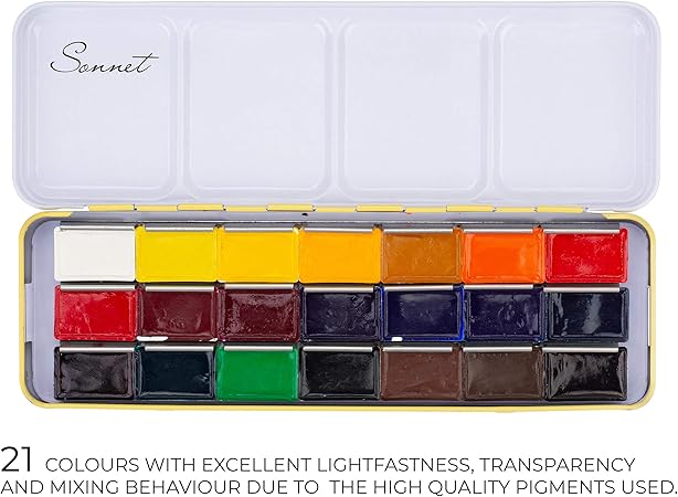 Sonnet Set D Aquarelles Dans Une Pochette En Metal 21 Aquarelle Palette De Haute Qualite Kit Peinture Fabriquees En Russie Par Neva Palette Nevskaya Palitra Amazon Fr Cuisine Maison