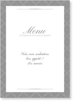 Un dîner de mariage à thème Le thème d’un mariage définit toute la décoration du mariage Et la présentation du menu n’en est pas exclue pour un mariage sur le thème de l’aventure, le menu peut prendre la forme d’un passeport ou d’un avion Pour un mariage plutôt rustique, un rondin de bois peut faire office de menu Le. Créez vousmême votre carte de menu de mariage !. Menu mariage Le menu de mariage habille vos tables de la plus jolie des façons Un papier de qualité sur lequel reposent les entrées, plats, desserts et boissons qui raviront vos convives Familles et amis trouveront à leur goût ces créations originales, tantôt design, tantôt classiques.