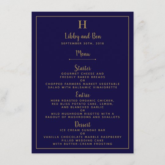 Bleu Marine Chic Et Modele De Menu De Mariage D Or Zazzle Fr