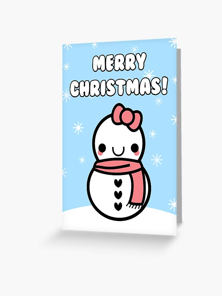Carte De Vœux Carte De Voeux Adorable Bonhomme De Neige Dessin Anime Kawaii Par Hellohappy Redbubble