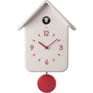 Coucou Moderne A Quartz En Bois Laque Blanc Oiseau Rouge