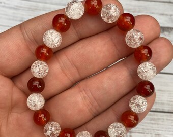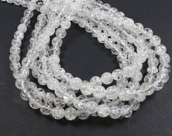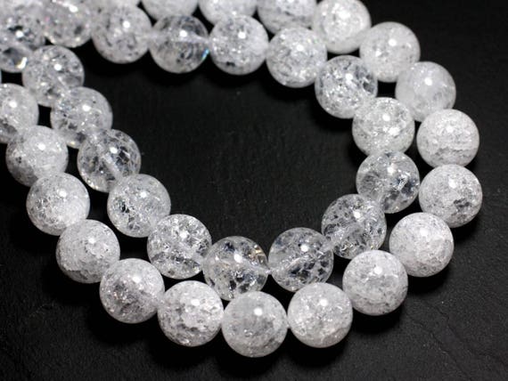 Cristal De Roche Quartz Craquele Boules 8 Perles De Pierre Fil 39cm 48pc Env