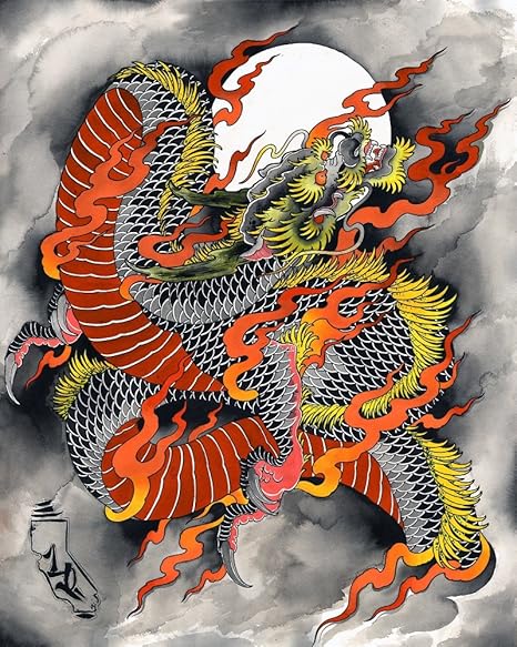 Amazon Com Rising Dragon By Clark North Traditional Japanese Tattoo Art Print For Framing Posters Prints