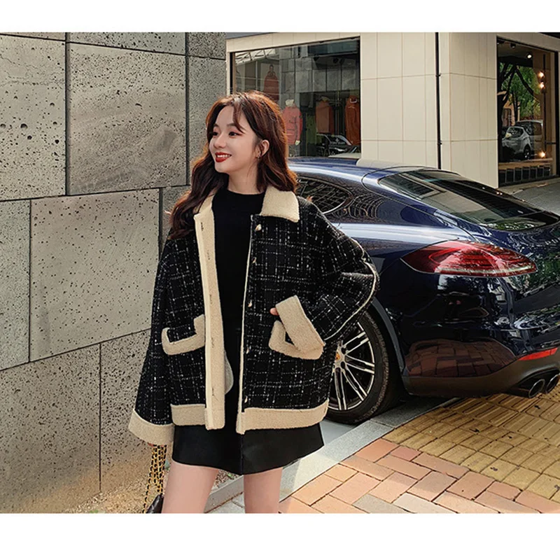 Winter Woolen Jacket Women Vintage Casual Nude Lamb Hair Beige Plaid Single Breasted Velvet Veste Laine Femme Hiver Coat Jackets Aliexpress