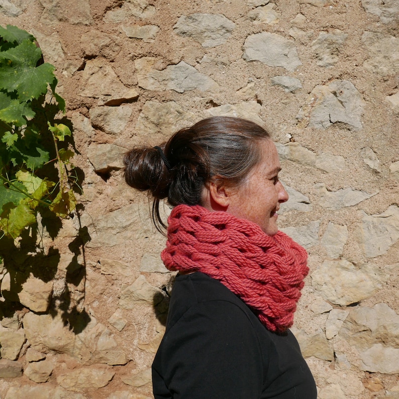 Snood Femme Rose Grosse Laine Echarpe Noel Femme Un Tour Etsy