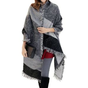 Grosse Echarpe Xxl Laine Gris Et Noir Femme