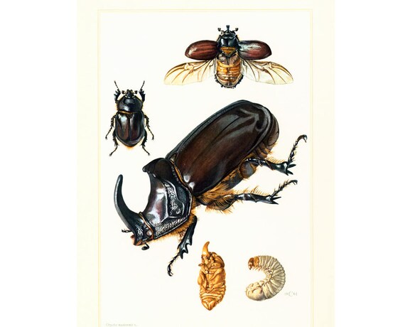 1960 Scarabee Rhinoceros Coleoptere Oryctes Nasicornis Etsy