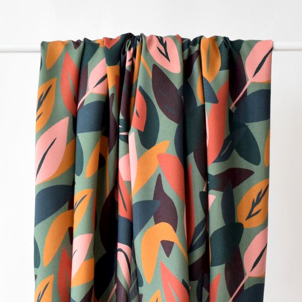 Tissu Viscose Cousette Rameaux Smoke Green X10cm Perles Co