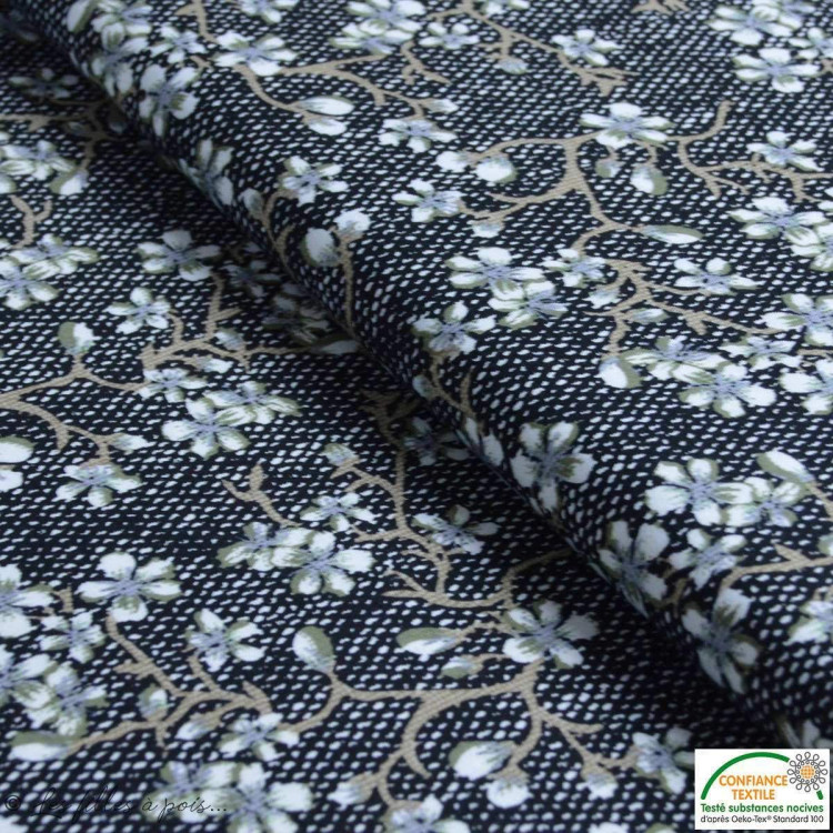 Coupon Tissu Viscose Motif Fleur Noir 70cm Achat Vente