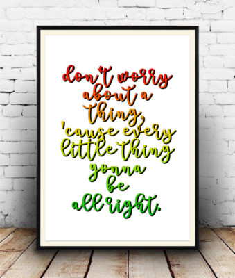 Motivational Print Three Little Birds Lyrics Positive Quotes Dont Worry Bout A Thing Bob Marley Lyrics
