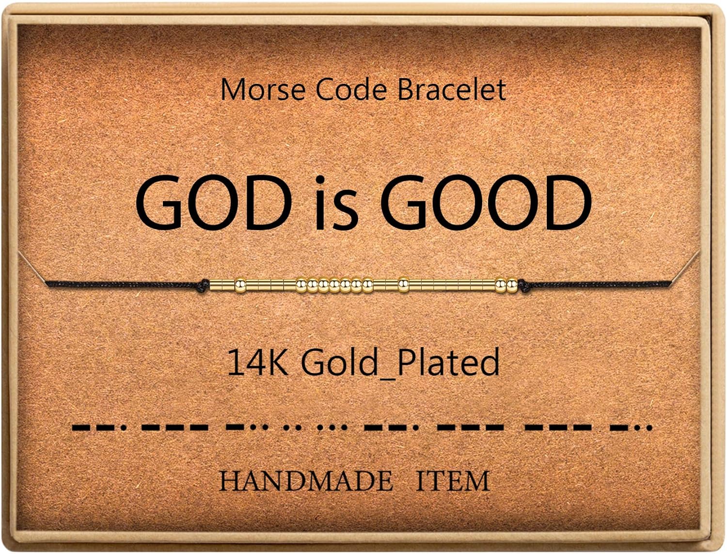Amazon Com Morse Code Bracelet 14k Gold Plated Beads On Silk Cord Secret Message God Is Good Bracelet Gift Jewelry For Her Clothing