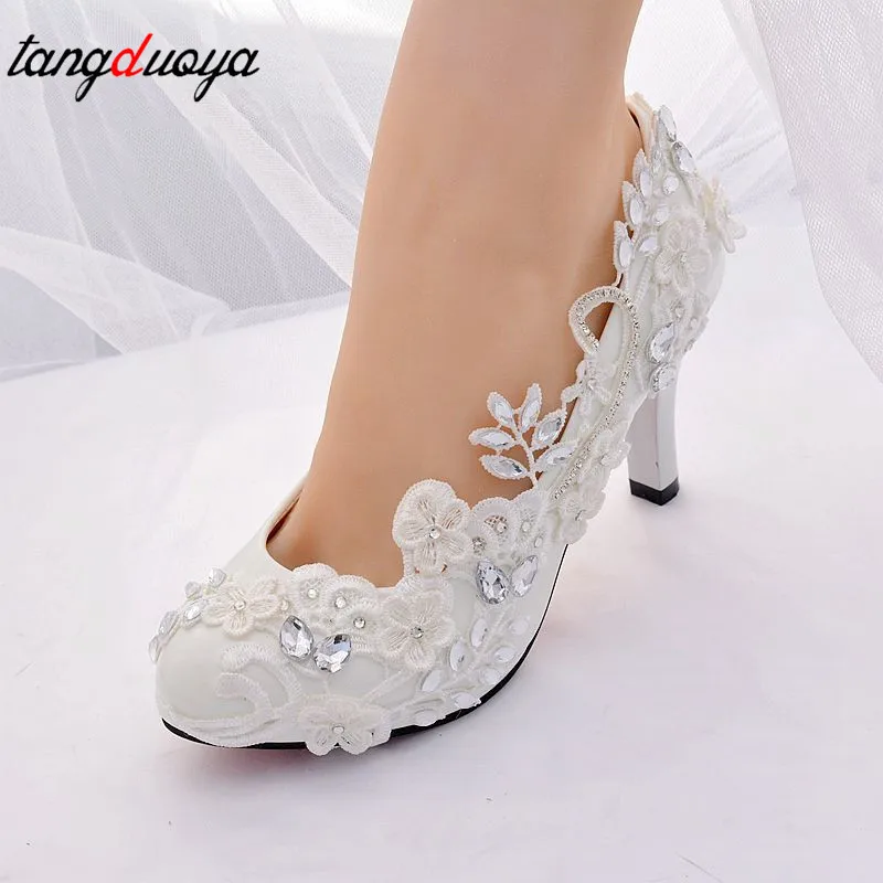 Chaussures De Mariage Escarpins A Talons Hauts En Cristal Pour Femmes Chaussures De Mariee Blanches Aliexpress