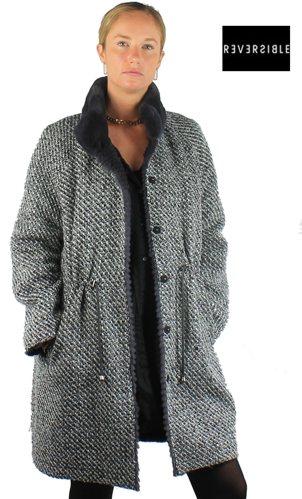 Manteau Laine Reversible Oakwood Yale Bi Beige Gris