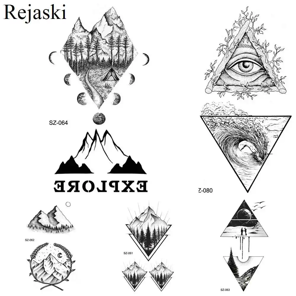Rejaski 3d Triangle Oeil Totem Tatouage Autocollants Femmes Corps Bras Temporaire Tatouage Lune Hommes Mains Impermeable Tatoos Vallee Maquillage Pointe Aliexpress
