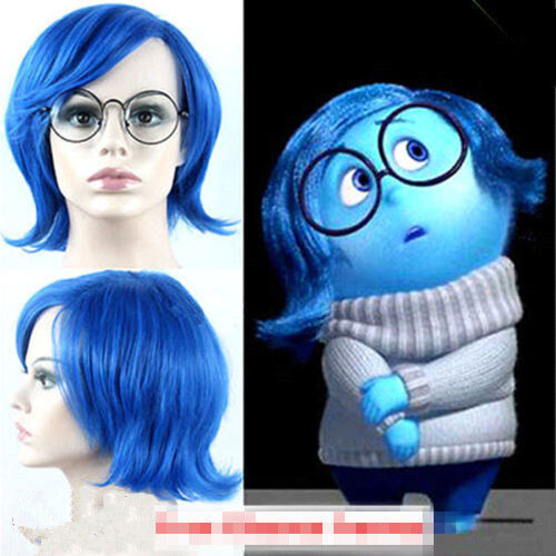 Movie Inside Out Sadness Blue Wig Cosplay Wig Halloween Role Play Sadness Blue Hair Costumes With Hair Cap Mega Sale 24fb Cicig