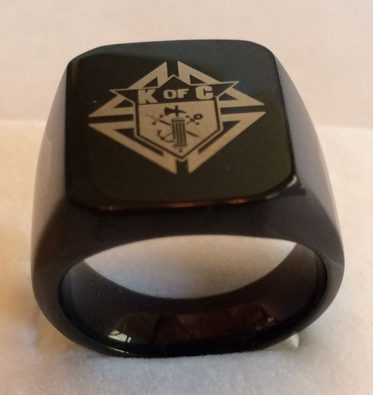 Kofc Laser Etched Black Plated Steel Ring Knights Of Columbus Supplies