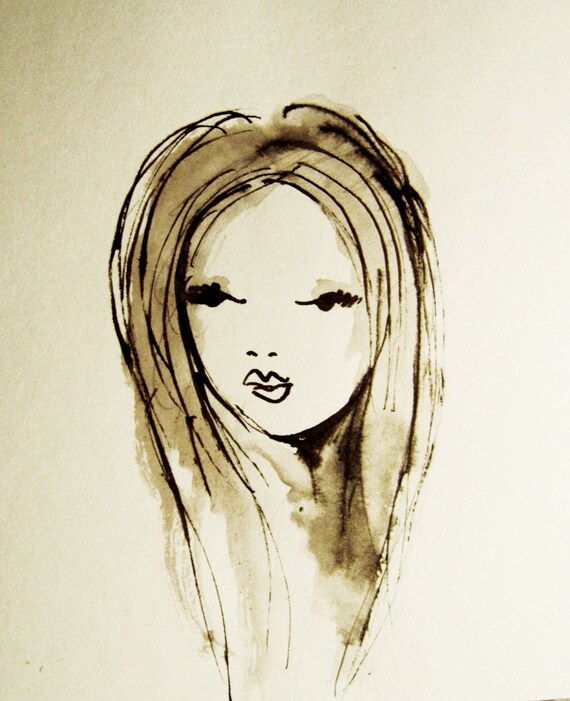 Face Original Peinture A Lencre Dessin Visage De Filles Etsy