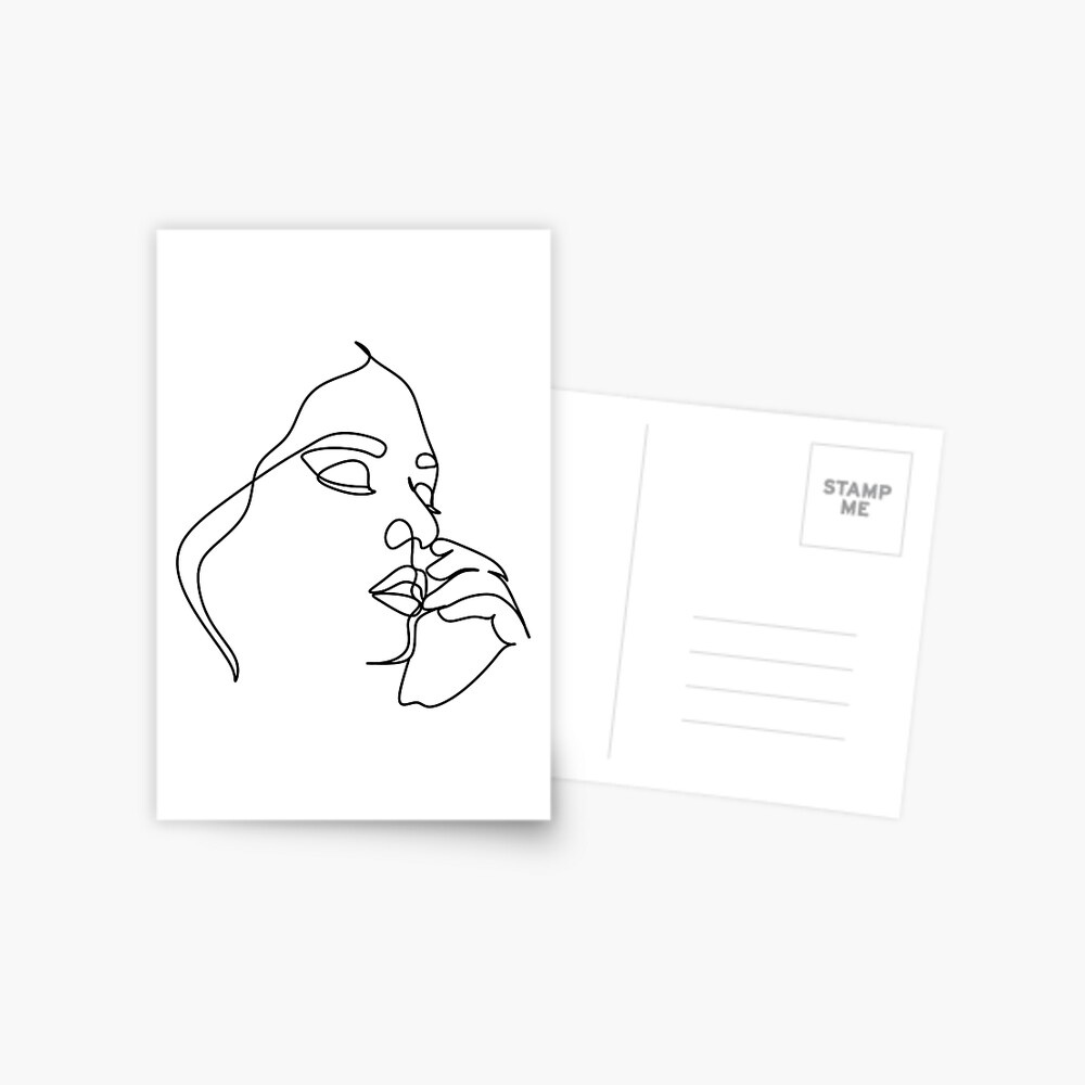 Carte De Vœux Visage D Une Femme Art En Ligne Dessin Au Trait Fille De