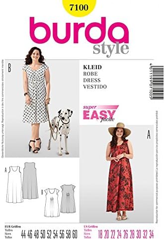 Burda Patron De Couture Facile Pour Femme 7100 Robes D Ete Grandes Tailles 46 54 Amazon Fr Cuisine Maison