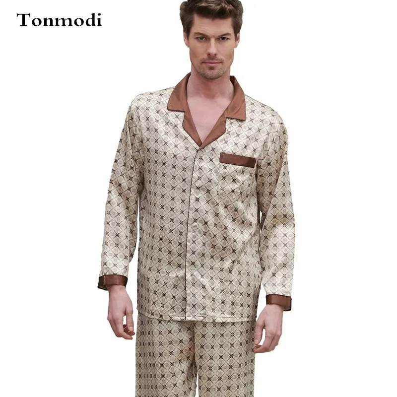 Acheter Pajama De Luxe Imprime Satin De Soie Pour Hommes Vetements De Maison De Haute Qualite Vetements De Nuit En Soie Costume De Nuit Pyjama En Satin Homme De 21 28 Du